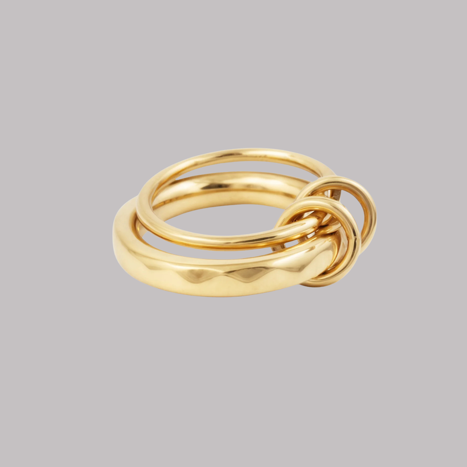 Der Umi Ring besticht durch sein elegantes, gestacktes Design in hochwertigem Gold. Dieses Schmuckstück vereint zeitlose Ästhetik mit moderner Raffinesse und lässt sich vielseitig kombinieren. Die präzise Verarbeitung sorgt für einen angenehmen Tragekomfort und eine langlebige Qualität, die Ihren Stil dezent unterstreicht. Ideal für Liebhaber feiner, minimalistischer Schmuckstücke mit einem Hauch von Luxus.